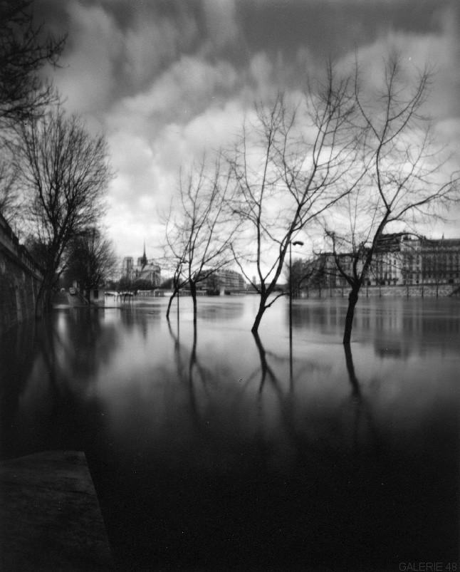 Cet appareil photo, démuni de viseur, ne peut être dit comme un prolongement de l’œil humain mais il s’avère un complice de captures d’inattendus, qui se révèleront quelques temps après, au développement. Au lieu du déclic instantané d’un reflex, la lumière perce les ténèbres lentement et silencieusement au travers de ce petit trou, pour calmement, comme les ondes à la surface de l’eau, confondre la perspective sur la plaque. Toute ma réflexion précède la prise de vue puis j’attends qu’elle se révèle dans la cuve de ma chambre noire. La complicité entre la réflexion et le sténopé me fascine toujours.